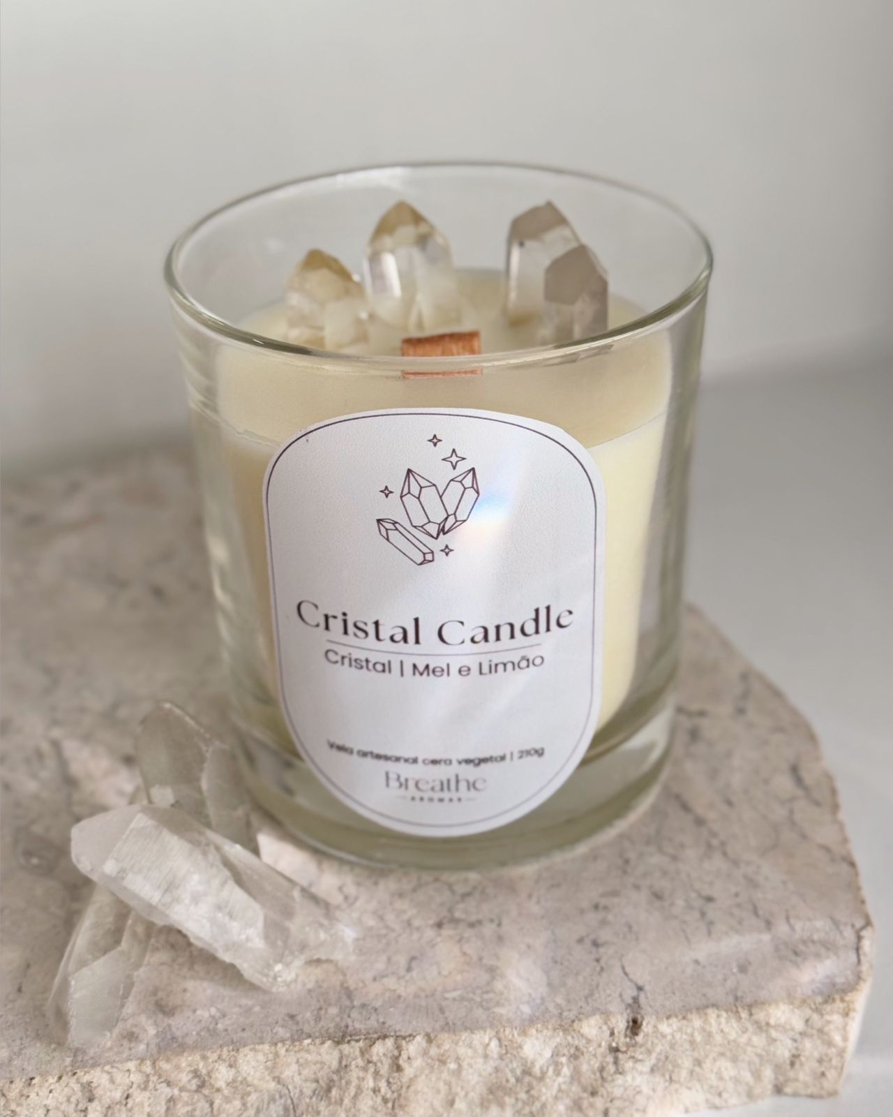 O quartzo cristal é a pedra da energia pura, ideal para limpeza energética e amplificação de boas vibrações. Quando combinada com o aroma cítrico do limão e adocicado do mel, ela cria um ambiente revigorante, confortável e traz leveza ao espaço.
